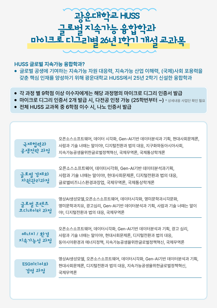 글로벌지속가능융합학과 마이크로디그리별 26년 1학기 개설 교과목 안내