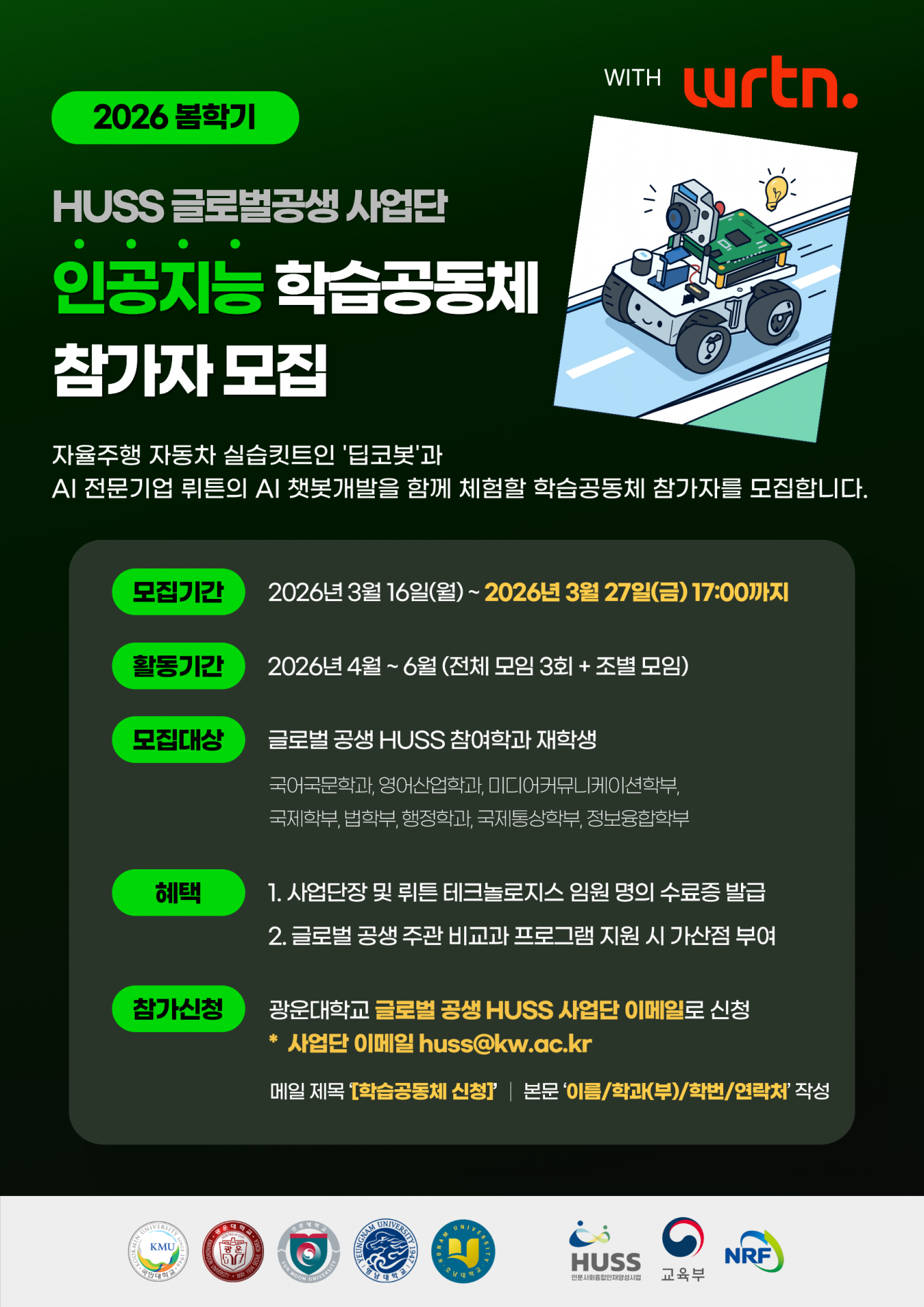 4. 신청방법: 광운대 글로벌 공생 HUSS 사업단 이메일 (huss@kw.ac.kr)로 신청