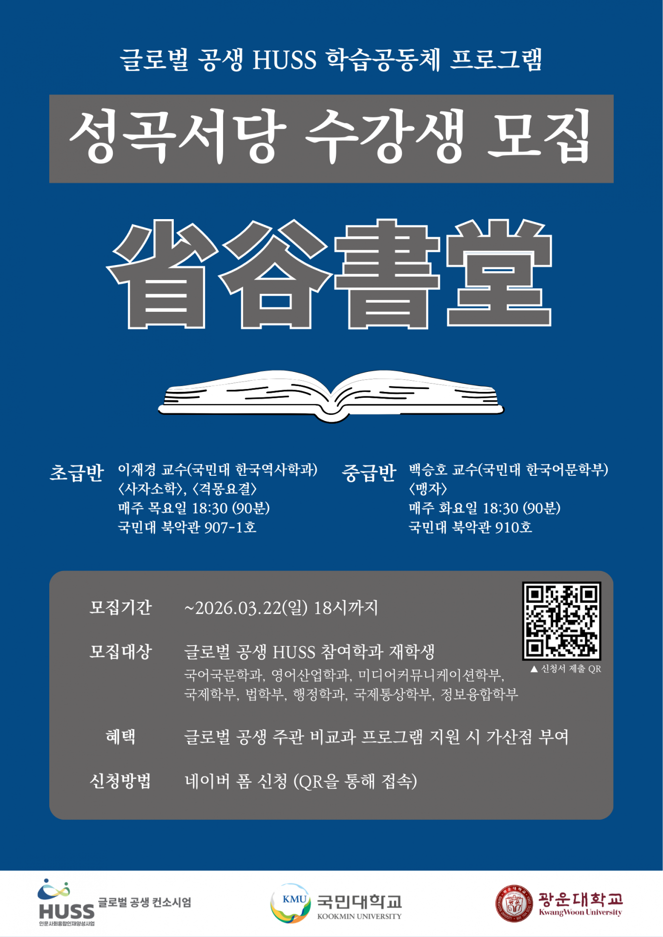 HUSS 학습공동체 참가자 모집 (국민대 주관) - 성곡서당 수강생 모집