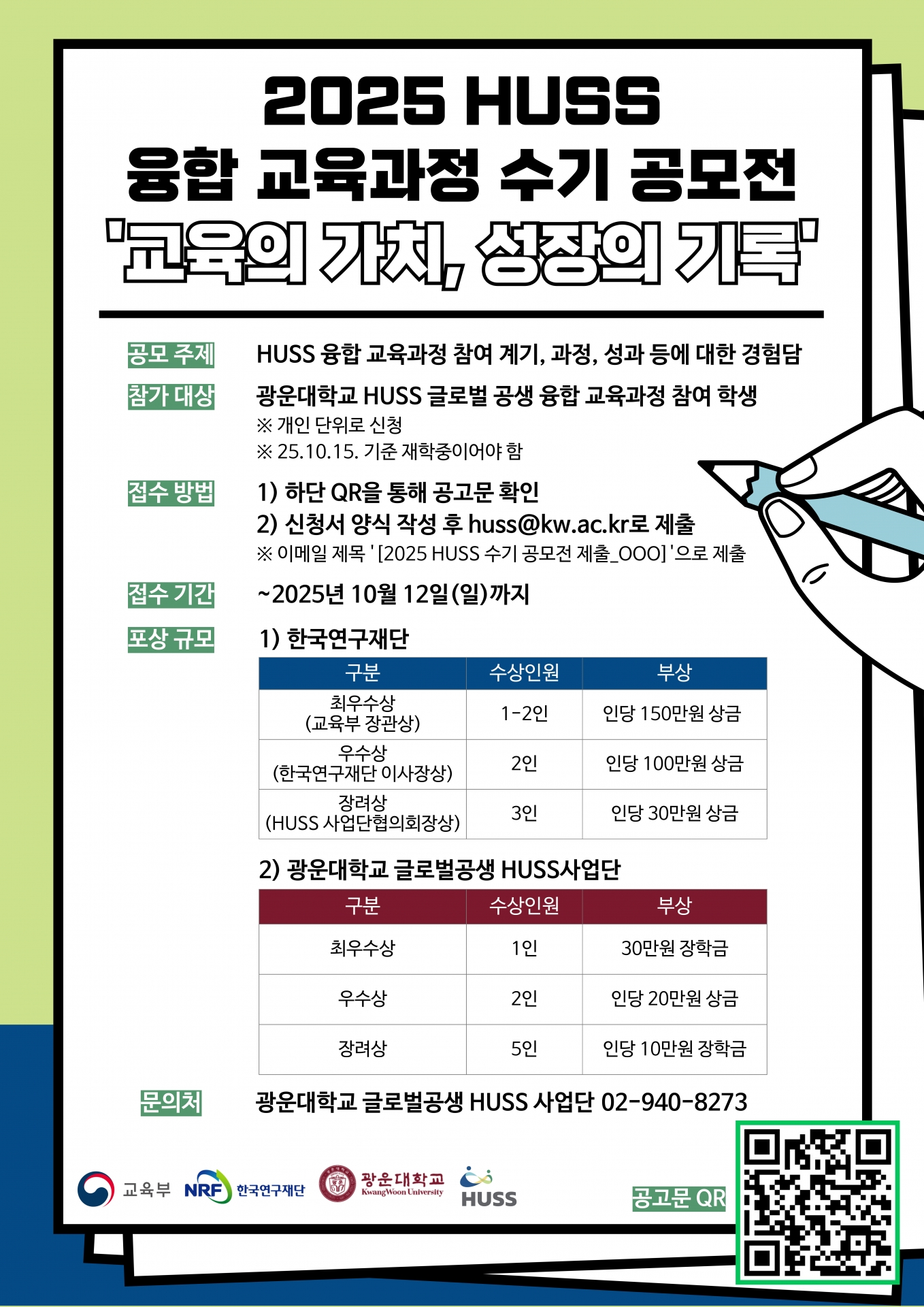 2025년 인문사회 융합인재양성사업(huss) 융합 교육과정 수기 공모전을 다음과 같이 개최하오니