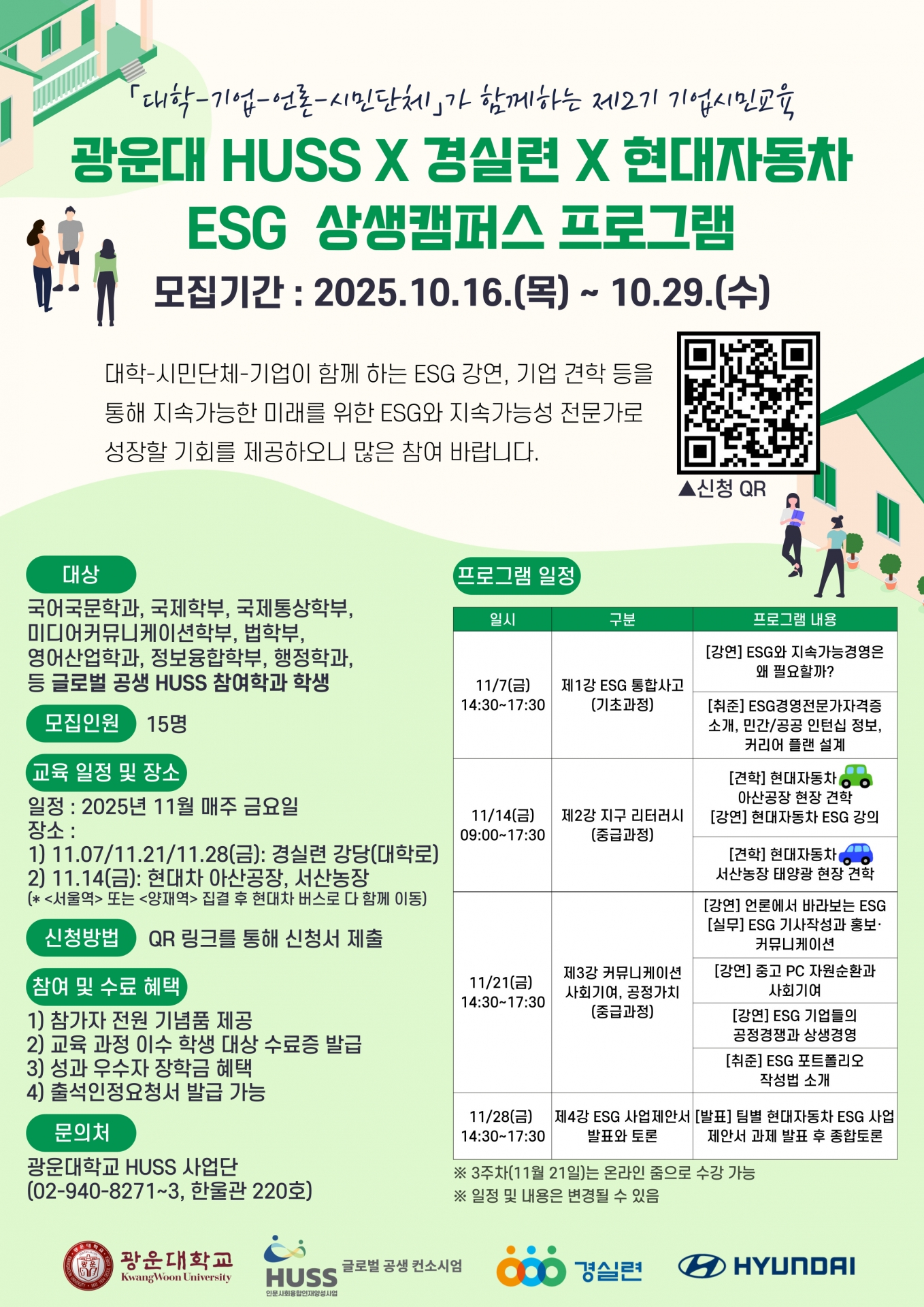 (**기한 연장/~10.29.(수)까지) <광운대 HUSS X 경실련 X 현대자동차 ESG 상생캠퍼스 프로그램> 모집 안내