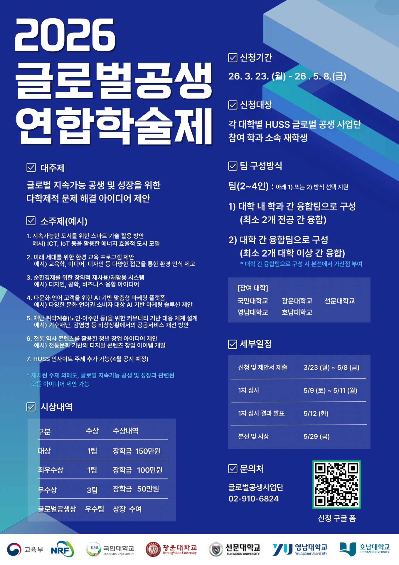 글로벌 공생 HUSS에서 '2026 글로벌 공생 연합 학술제'를 운영합니다.