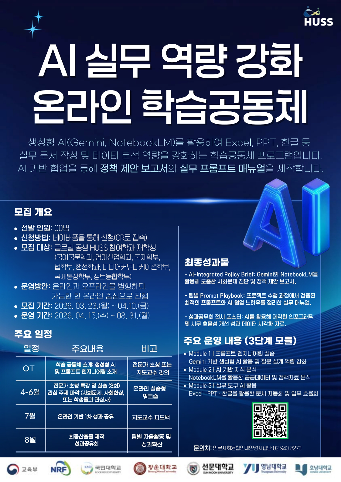 글로벌 공생 컨소시엄에서 HUSS 학습공동체 ‘AI 실무 역량 강화 온라인 학습공동체'를 모집합니다.