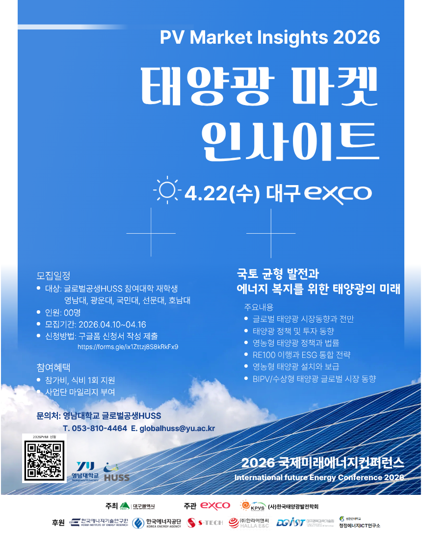 글로벌 공생 HUSS사업단에서 '2026 PV Market Insight' 참가자를 모집합니다.