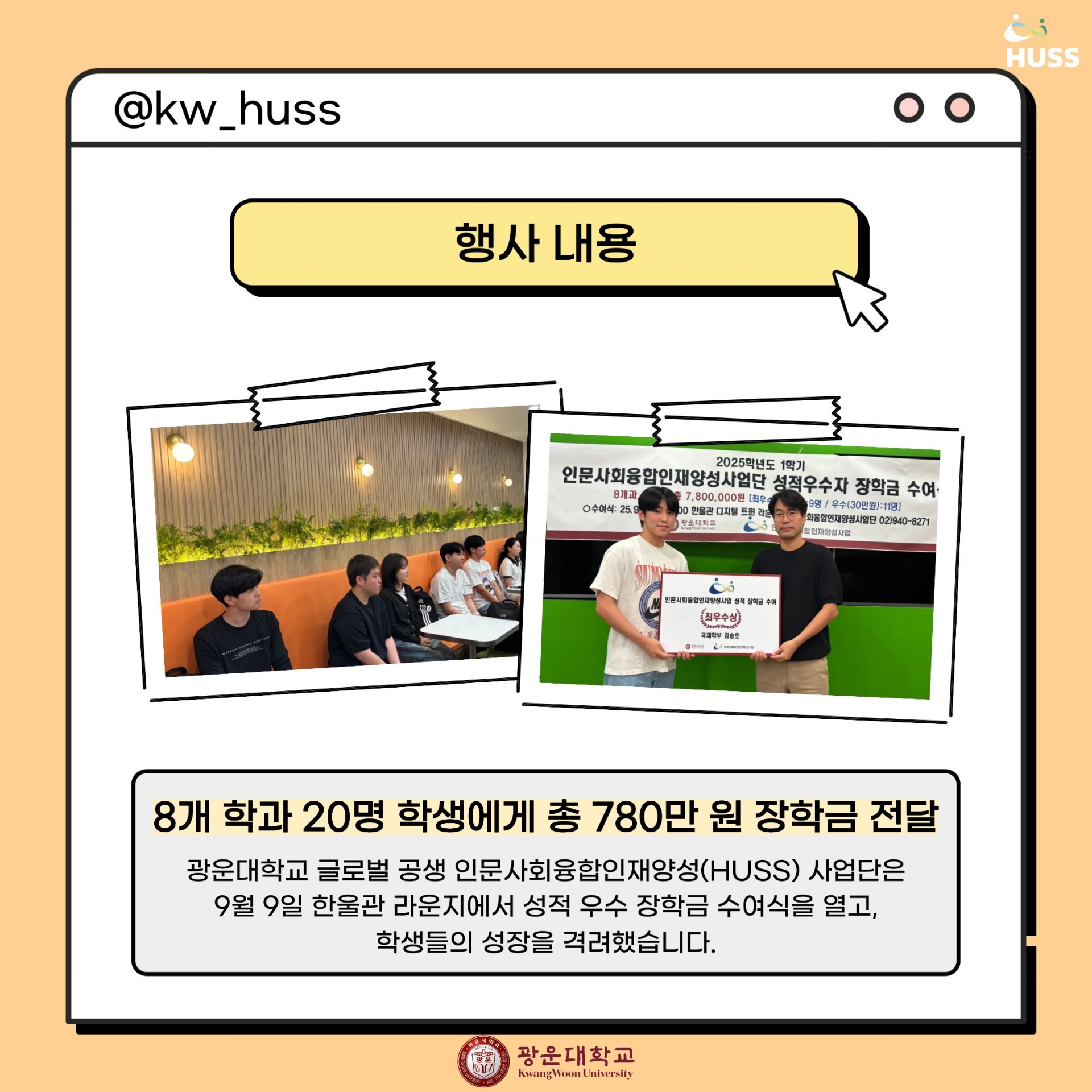 2025학년도 1학기 인문사회융합인재양성사업단 성적 장학금 수여식